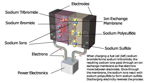 as does a conventional electrochemical battery, the technology pumps electrolytes
